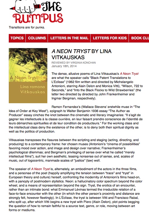 Accomplished poet of The New Yorker and The Believer, Virginia Konchan, reviews my Shearsman title here at The Rumpus.