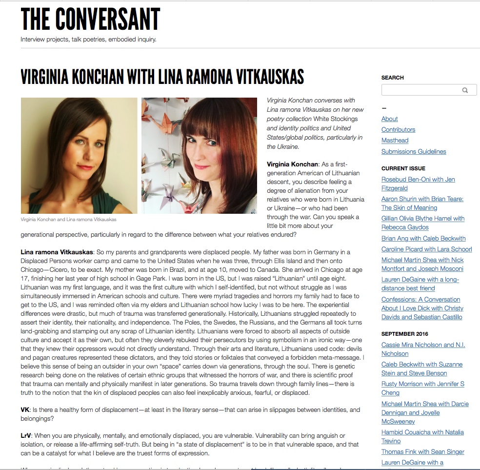 Back in March, I was interviewed for The Conversant by Virginia Konchan.